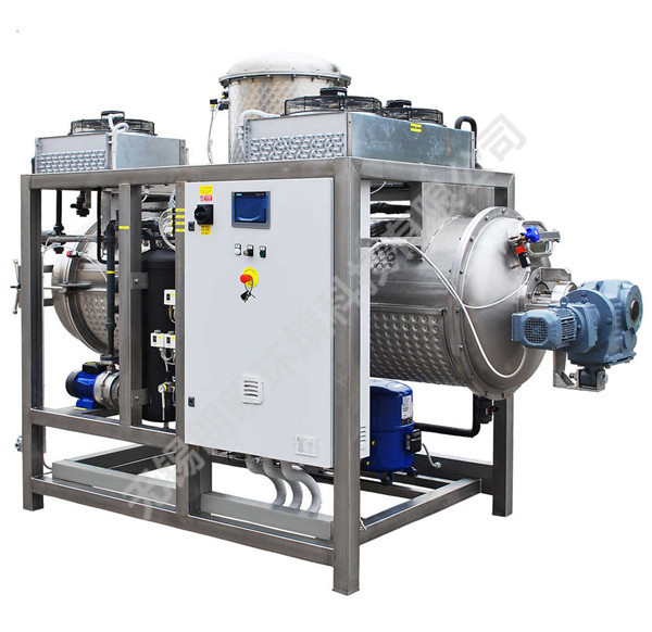 低溫熱熱泵結晶器是一個可以將將物料加熱,使物料中的水分徹底蒸發,水蒸氣上升后再進行冷卻形成冷凝水的過程,冷凝水達標排放或者回用,濃縮物以含水量極低的高濃度液體或者固體(干粉或晶體)的形式作為危廢處置,對危廢減量及物料回收有著十分重要的意義。